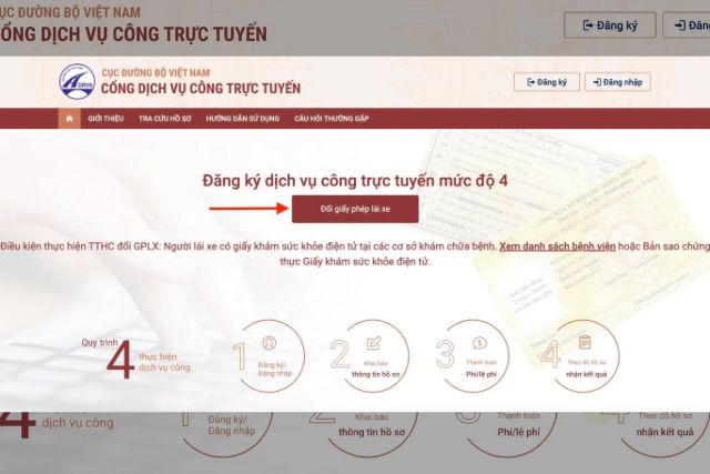 - Chọn Đổi giấy phép lái xe do ngành giao thông vận tải cấp